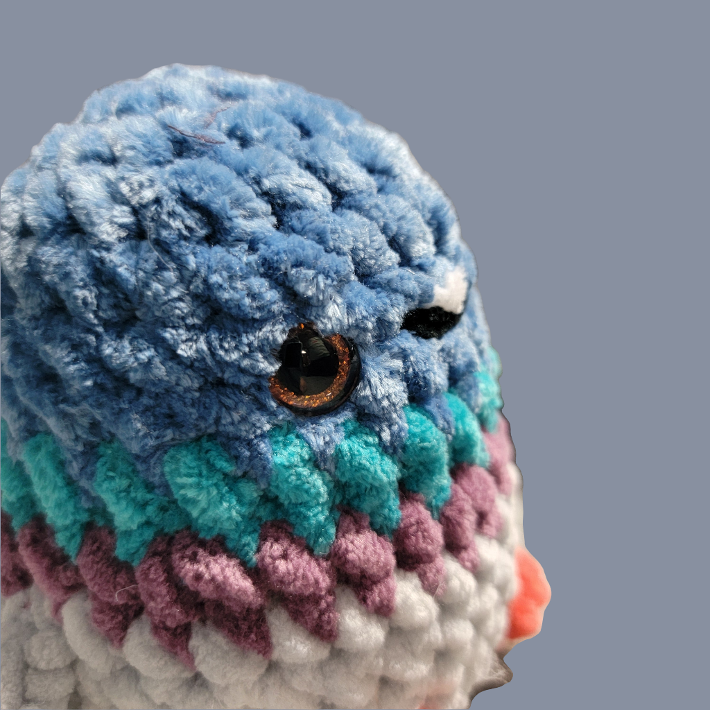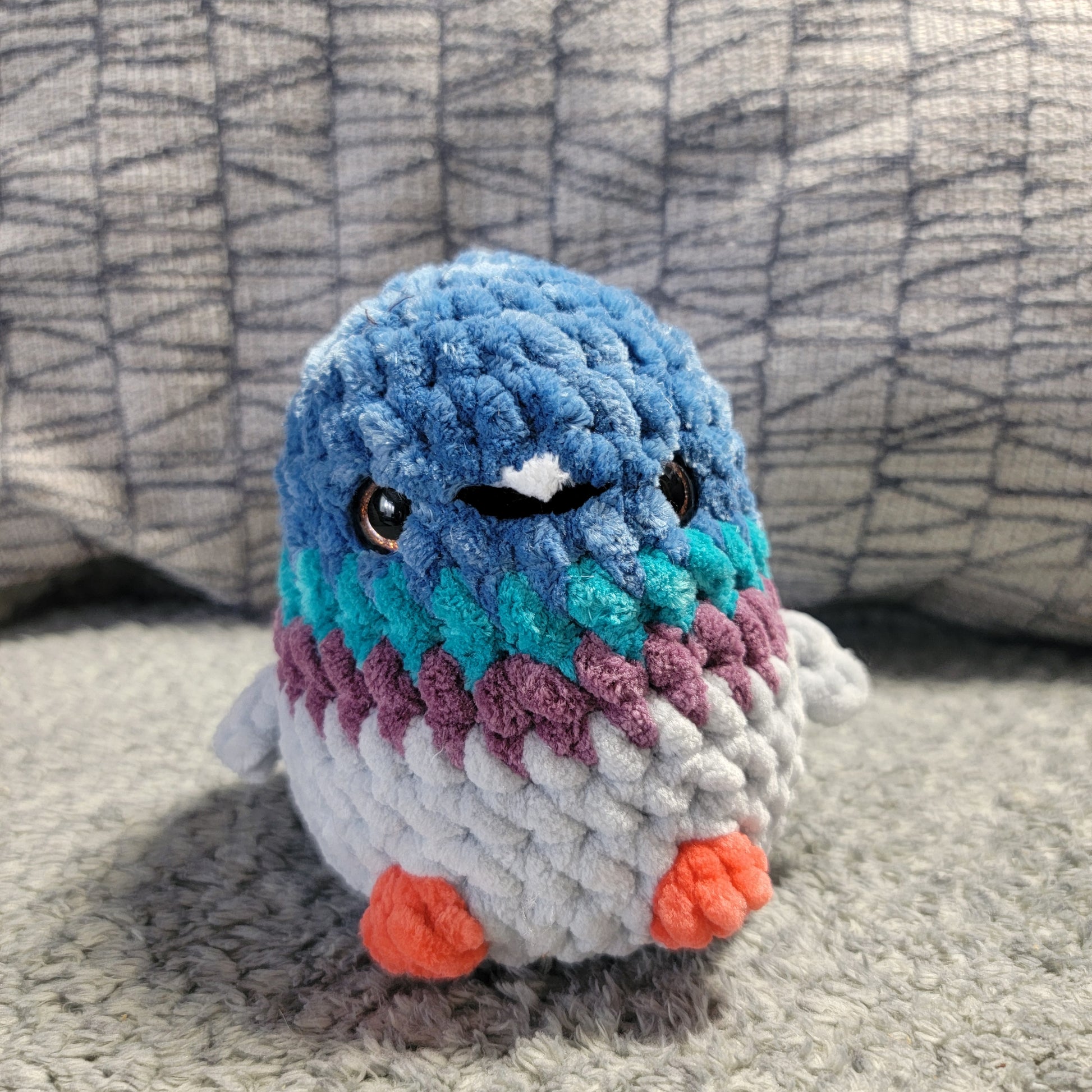 Crochet chubby pigeon amigurumi. This plush toy is safe for all ages. Stands 5 inches tall.